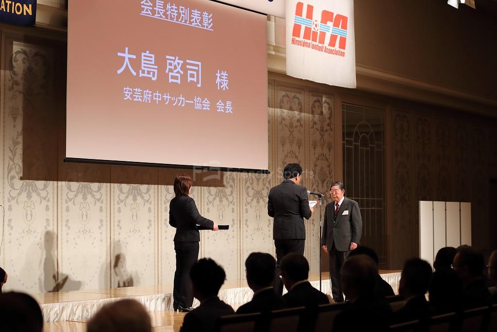 また、被爆80周年の節目の年に、(公財)広島県サッカー協会(以下:広島FA)では森保日本代表監督をゲストに迎えイベントを開催するなどし、広島県サッカー界の発展に大きく貢献成果もあり、JFAが公認する各都道府県ランキングでは1位を獲得したと、広島FA会長 宗政氏より発表がありました。